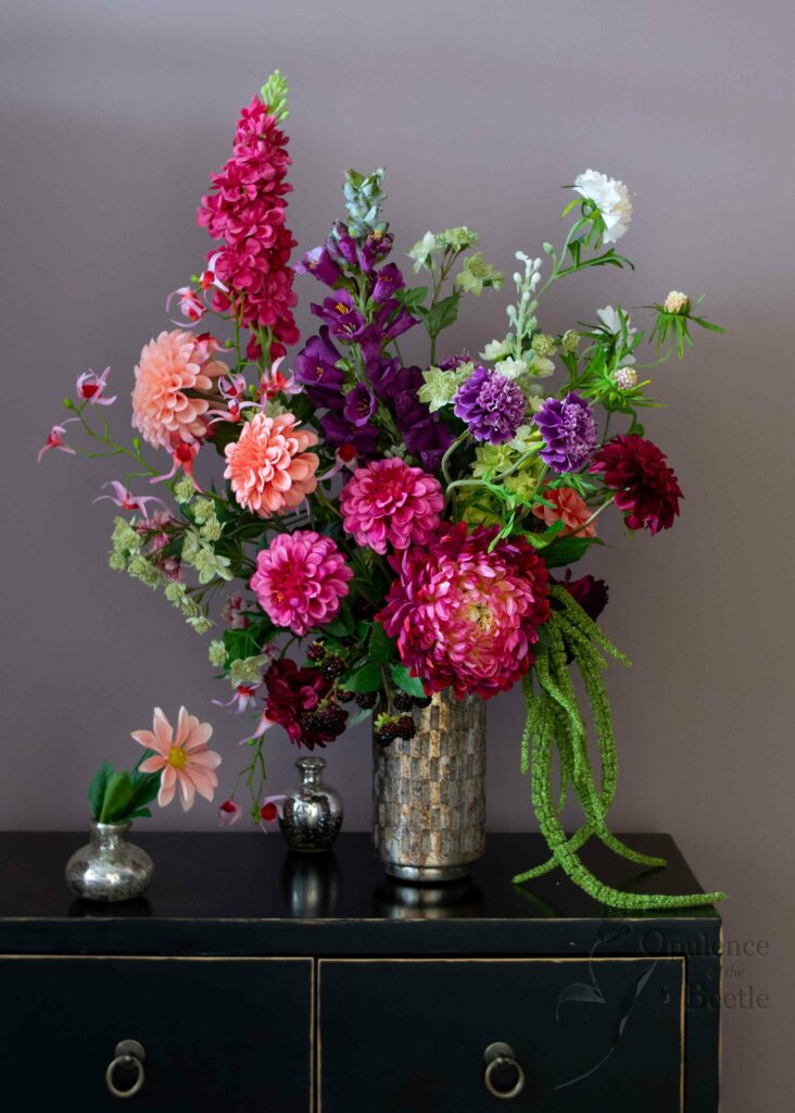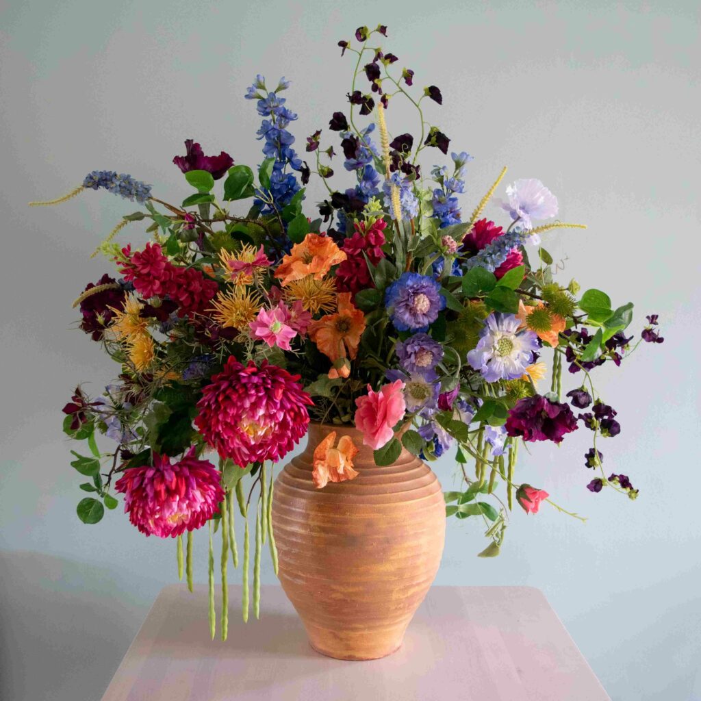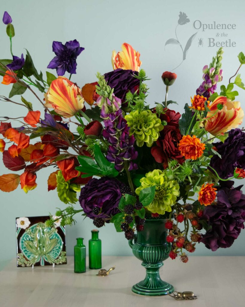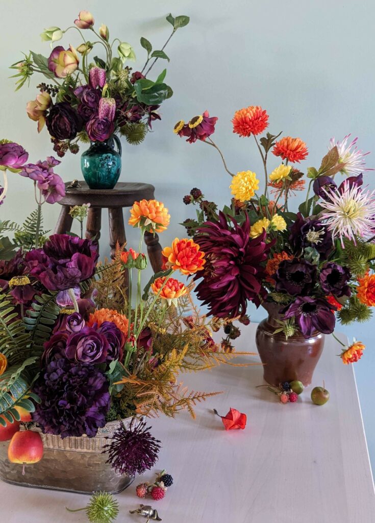 ‘Mellow and fruitful’ arrangements with dazzling dahlias, faded blooms and beautiful berries and seedheadsView Collection